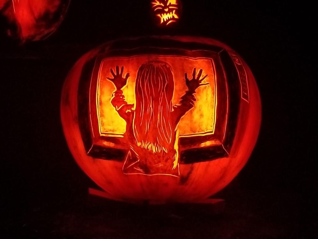 正在上演恐怖片中经典一幕的南瓜灯